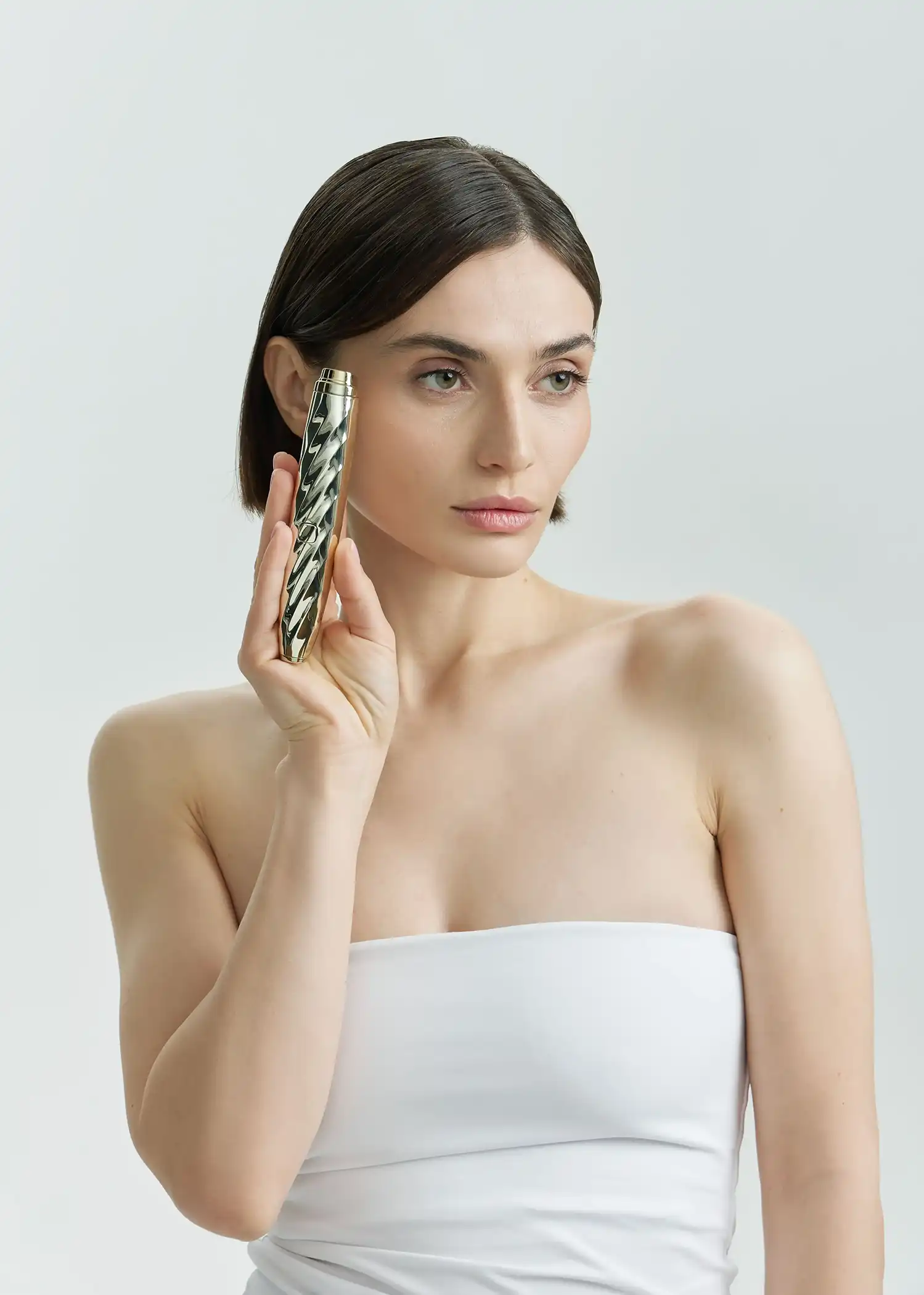- Нанесите массажный гель-проводник на кожу вокруг глаз