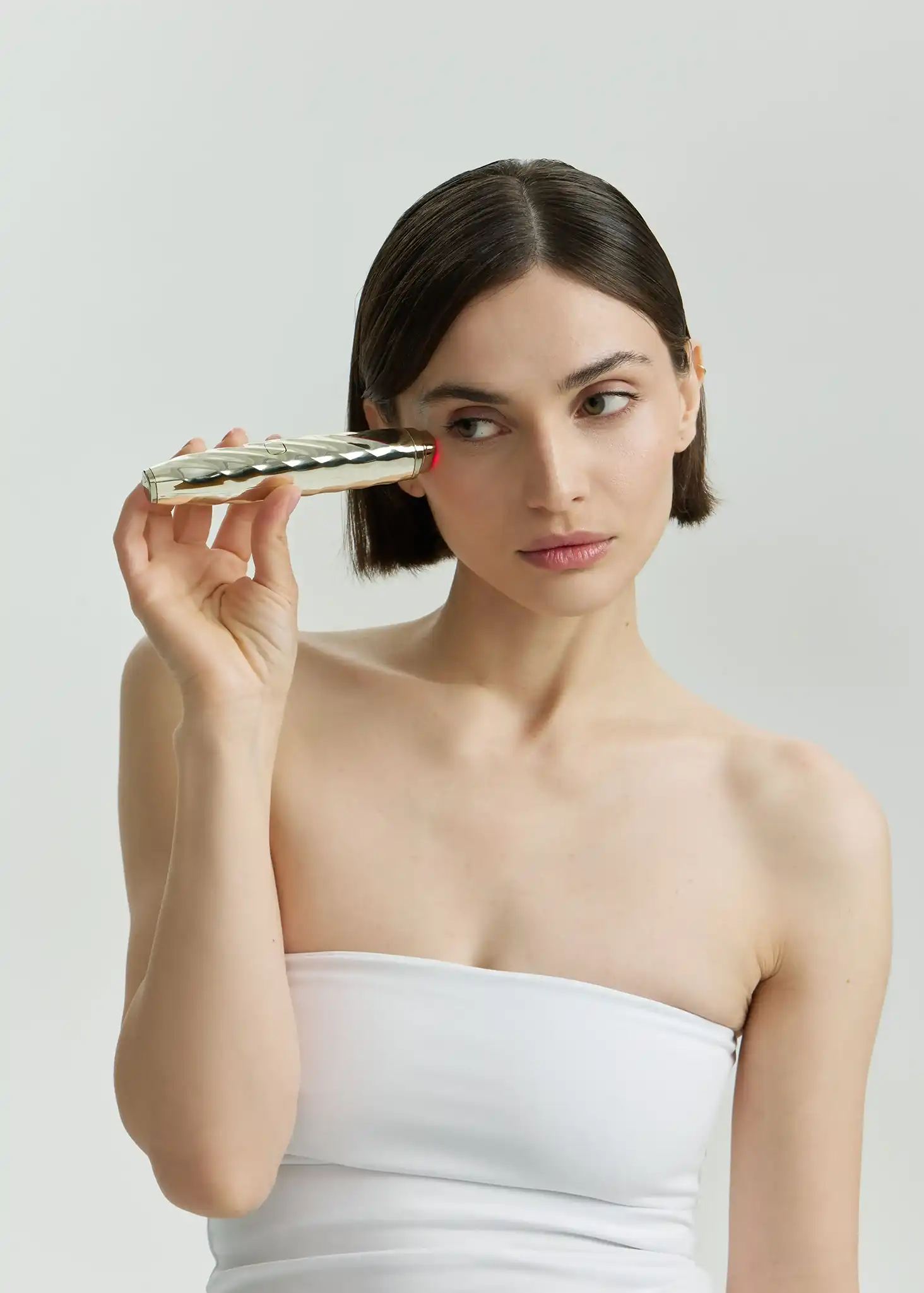 - Проводите массажёром по орбитальной косточке, двигаясь от внутреннего уголка глаза к внешнему