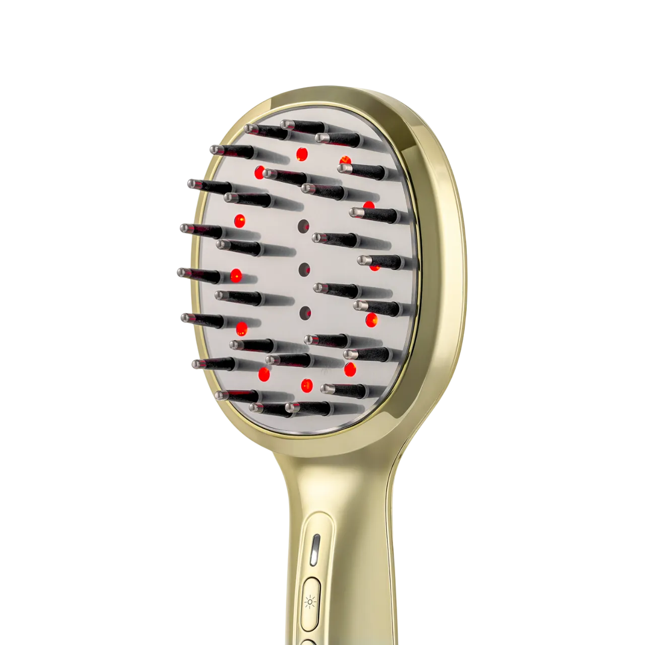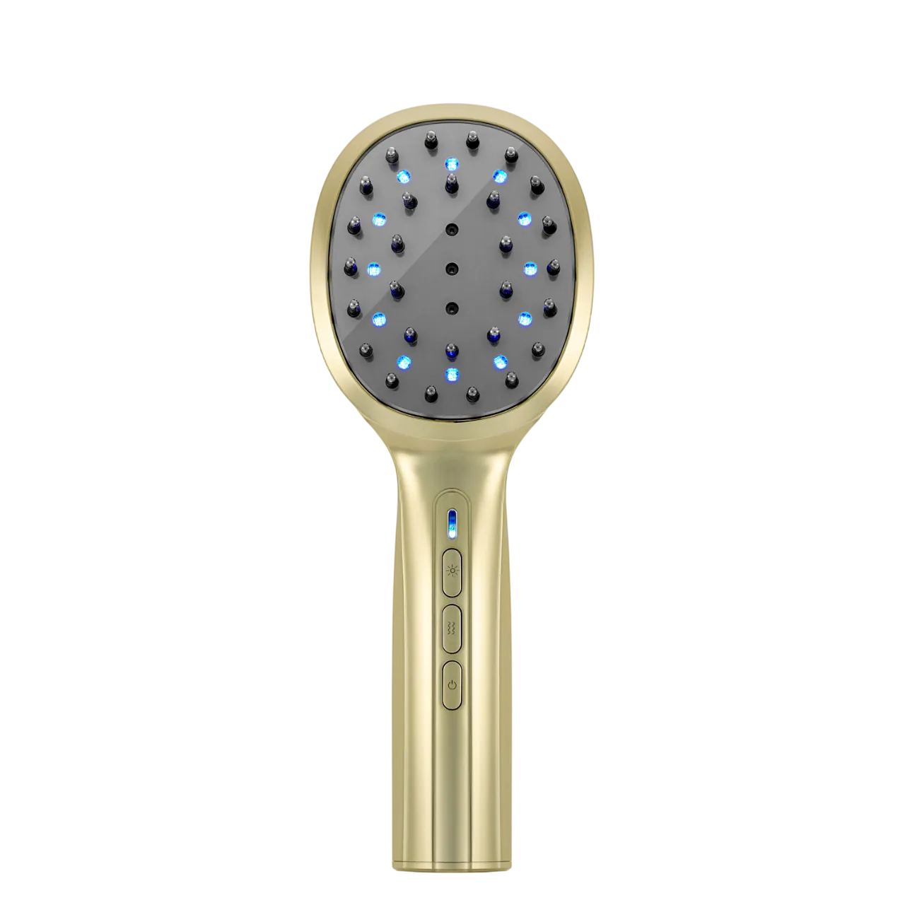 Массажер сочетает три технологии — электромиостимуляцию, вибрацию и фототерапию для роста волос, улучшения кровообращения и ухода за кожей головы. С его помощью вы сможете укрепить волосяные фолликулы, уменьшить выпадение и создать идеальные условия для здорового роста