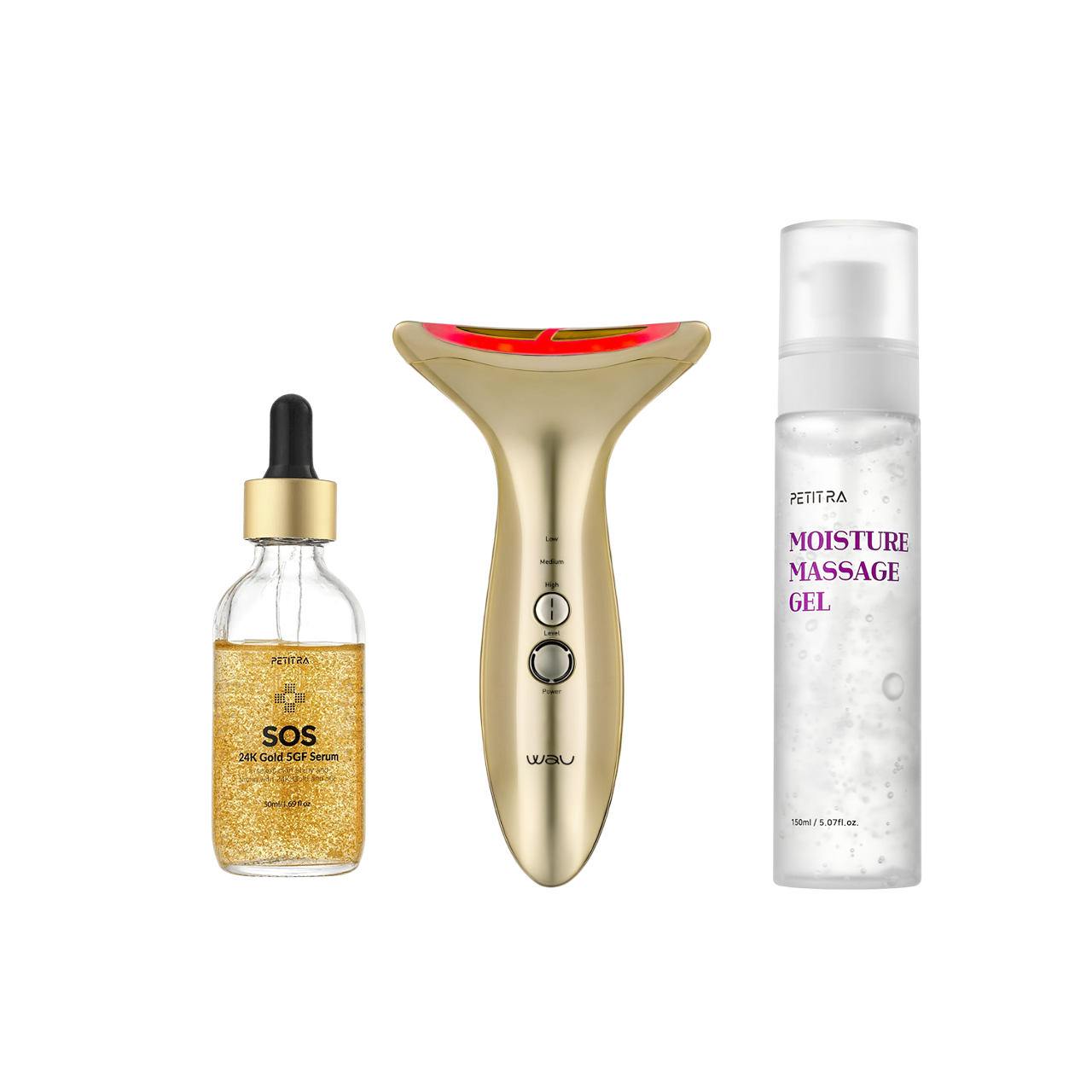Комплекс для профессионального ухода в домашних условиях. Многофункциональный массажер MAMI New с 3 технологиями, сыворотка SOS Gold с золотом для мгновенного лифтинга и проводящий гель для усиления эффекта. Обеспечивает видимый результат: подтяжка, сокращение морщин, сияние и ровный тон кожи. Комплект прост в использовании и подходит для всех типов кожи
