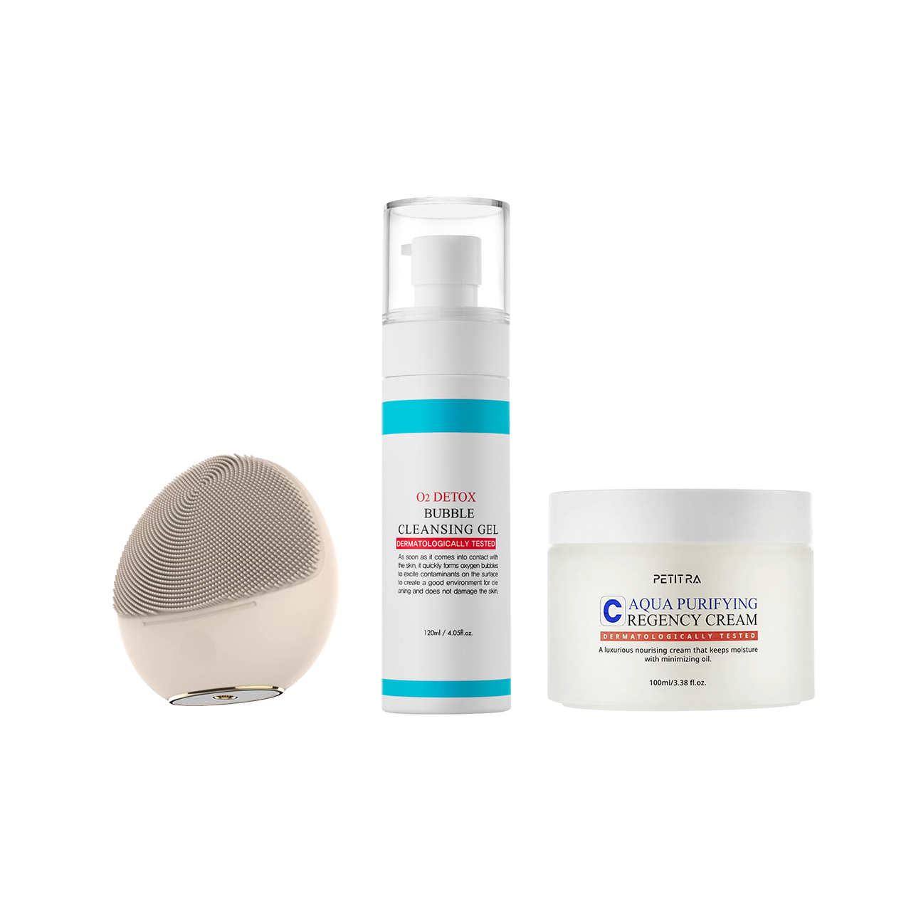 Комплект для глубокого и деликатного очищения кожи: компактная щеточка-массажер MOMO с кислородным гелем О2 DETOX деликатно, но эффективно очистит кожу.