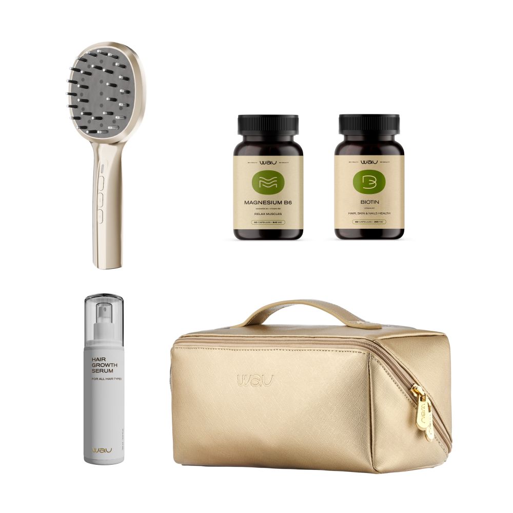 Забудьте о сложном подборе уходовых средств! Этот набор объединяет всё необходимое для здоровья и красоты ваших волос. Профессиональный массажёр, активная сыворотка, мощные добавки и стильная косметичка — готовое решение для заметного результата в домашних условиях